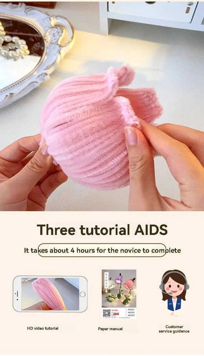 🌸💡DIY комплект от шенилни пръчици – лампа с момина сълза, настолна декоративна лампа